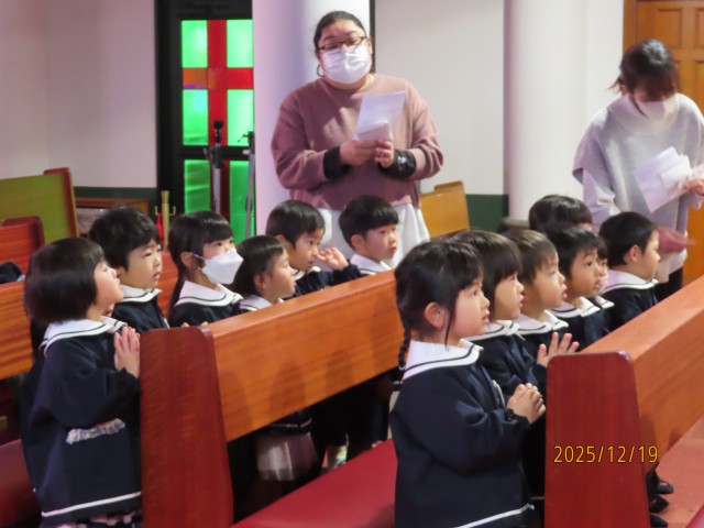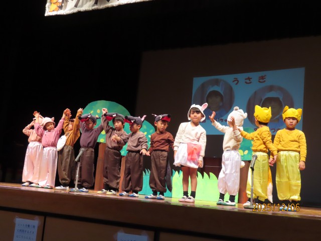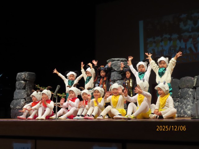 赤ちゃんイエス様のお誕生日をお祝いするために、年長さんは聖劇をしました。セリフもたくさん覚え、大きな声で発表することができました。各クラス、お遊戯やオペレッタ、合奏(リズムあそび)フィンガータップを頑張りました。これからもイエス様、マリア様の見守りの中でいろんなことに挑戦したり、お友だちに優しくしたりして元気に大きく成長しますように!