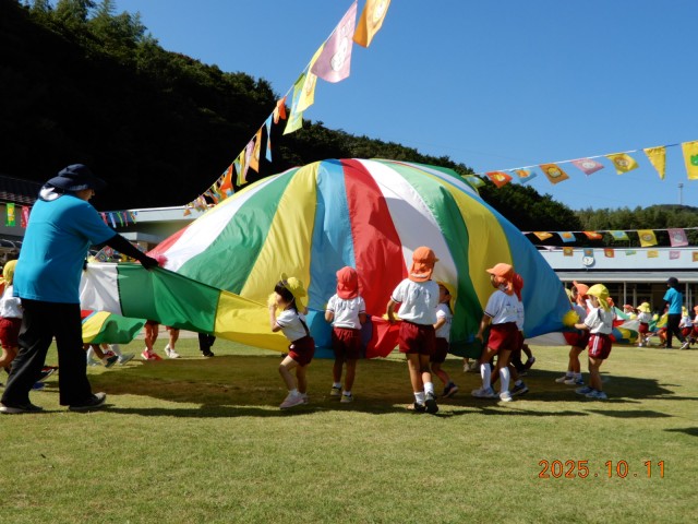 ダンシング玉入れとバルーン(smile)は3歳4歳5歳児のお友だちが力を合せて頑張りました。お互いを思いやったり、力を合せたりすることができ、運動会を通して成長した子ども達を見ることができました。