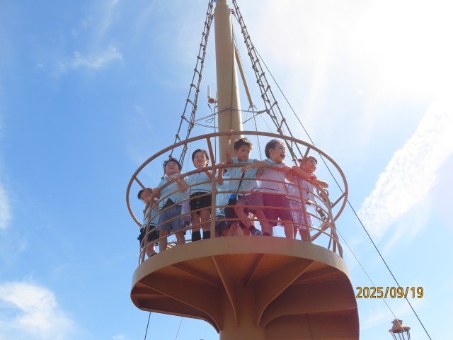 ファミリーデーでパールシーに行きました。遊覧船に乗って船長さんの制服を着たり、イルカのトレーニングショーを見たりして一日お父さんお母さんを独り占めして楽しみました。とっても楽しい一日になり沢山の思い出ができました。