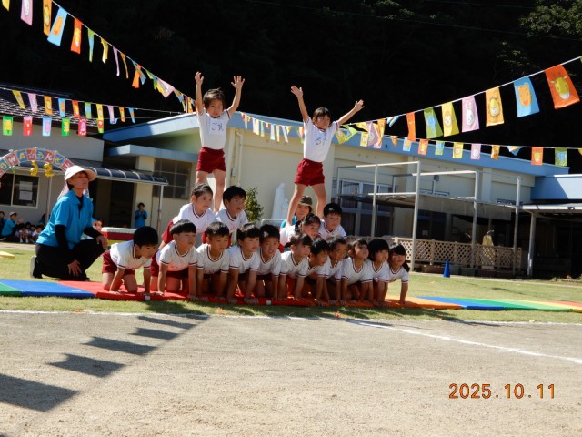 秋晴れのいいお天気に恵まれた中、園庭で運動会を行うことができました。年長さんの和太鼓(創作太鼓…東和太鼓、曲太鼓…名探偵コナン)とってもかっこよかったです。